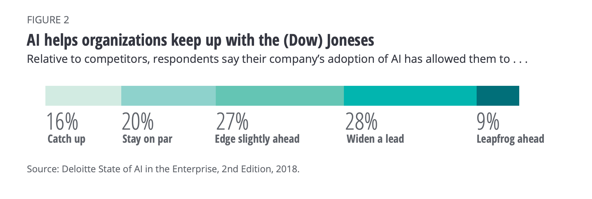 AI can automatically analyze data, predict outcomes and interpret analytics to help companies make better decisions and stay competitive. In fact, a Deloitte study found companies that invest in AI have been able to edge slightly ahead or even leapfrog their competitors.