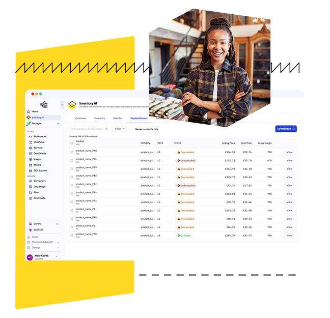 Inventory AI provides inventory replenishment planning software that applies AI models to your data across your whole network. It helps you match quantities of stock with demand, avoiding overstocking and optimizing your return on working capital through better distribution.