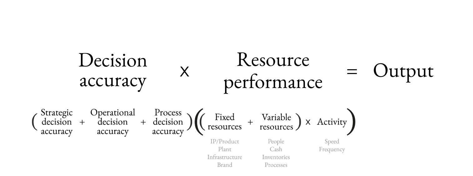 In other words, the output (or performance) of our business is governed entirely by the accuracy of our decisions multiplied by the performance of all of our resources. This is an important and powerful framework; one that I believe should sit at the core of how we think about leadership and performance.