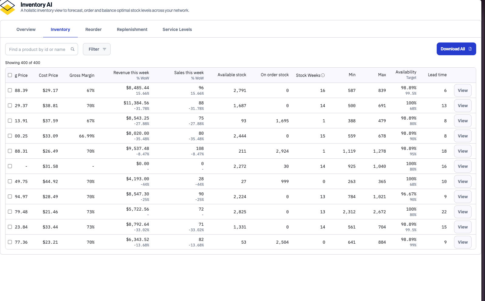 In addition, a new update to our reorder functionality will allow us to create supplier optimal purchase orders. This means that our Inventory AI product can set reorder points that account for additional constraints from your external suppliers that have a minimum order quantity (MOQ) either by units or value. This allows Inventory AI to really understand the unique complexity of your business and supply chain, ensuring that your AI is driving your business performance in the right way.