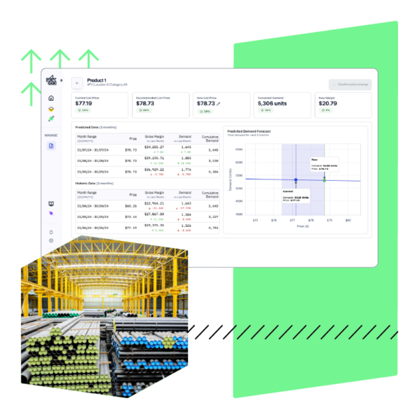Pricing AI’s List Price Optimizer uses AI to rapidly and continually optimize your list prices in one single location. View business level KPIs on projected list price change business impact, and dig into your highest value products using AI to understand future demand based on your new prices.